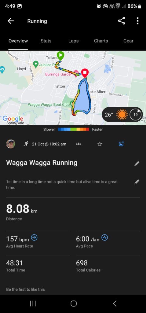 • Because the other thing, clear as a bell, rings true “it’s a starting point, I’ll get stronger and faster.” (I know, I know, I said two things but I just ran my first 8k in I don’t know how long and I’m stuffed ok!)