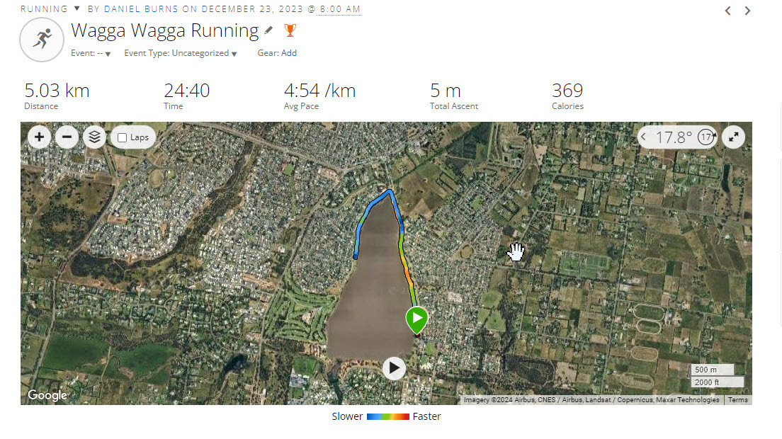 Then later in the day I joined in football training (Australian Rules Football) that my youngest son Billie does with a friend in the off season as part of their GWS Academy program… oooh, the colour pattern on the map is kinda cool. It’s because we did 200’s, then I did a little hills work around the edge and into kicking/running over on the field.