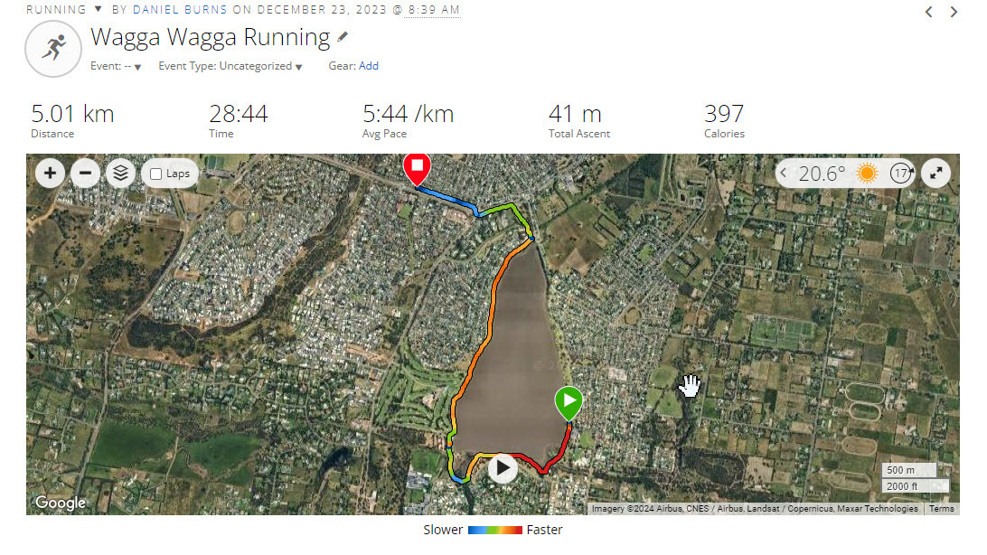 Then later in the day I joined in football training (Australian Rules Football) that my youngest son Billie does with a friend in the off season as part of their GWS Academy program… oooh, the colour pattern on the map is kinda cool. It’s because we did 200’s, then I did a little hills work around the edge and into kicking/running over on the field.